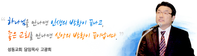 Çϳª´ÔÀ» ¸¸³ª¸é ÀλýÀÇ ¹æÈ²ÀÌ ³¡³ª°í, ÁÁÀº ±³È¸¸¦ ¸¸³ª¸é ½Å¾ÓÀÇ ¹æÈ²ÀÌ ³¡À̳³´Ï´Ù. Àú´Â ¼ºµ¿±³È¸¿Í ÀÌ È¨ÆäÀÌÁö¸¦ 찿¾Æ ¿À½Å ¸ðµç ºÐµéÀÌ ³» »îÀÇ ÁÖÀÎ µÇ½Ã´Â »ì¾Æ°è½Å Çϳª´ÔÀ» ¸¸³ª½Ã°í, ÁÁÀº ±³È¸¸¦ ¸¸³ª½ÉÀ¸·Î »îÀÇ ¸ðµç ¹æÈ²°ú ½Å¾ÓÀÇ È¥µ·ÀÌ »ç¶óÁö±â¸¦ ±âµµÇÕ´Ï´Ù.